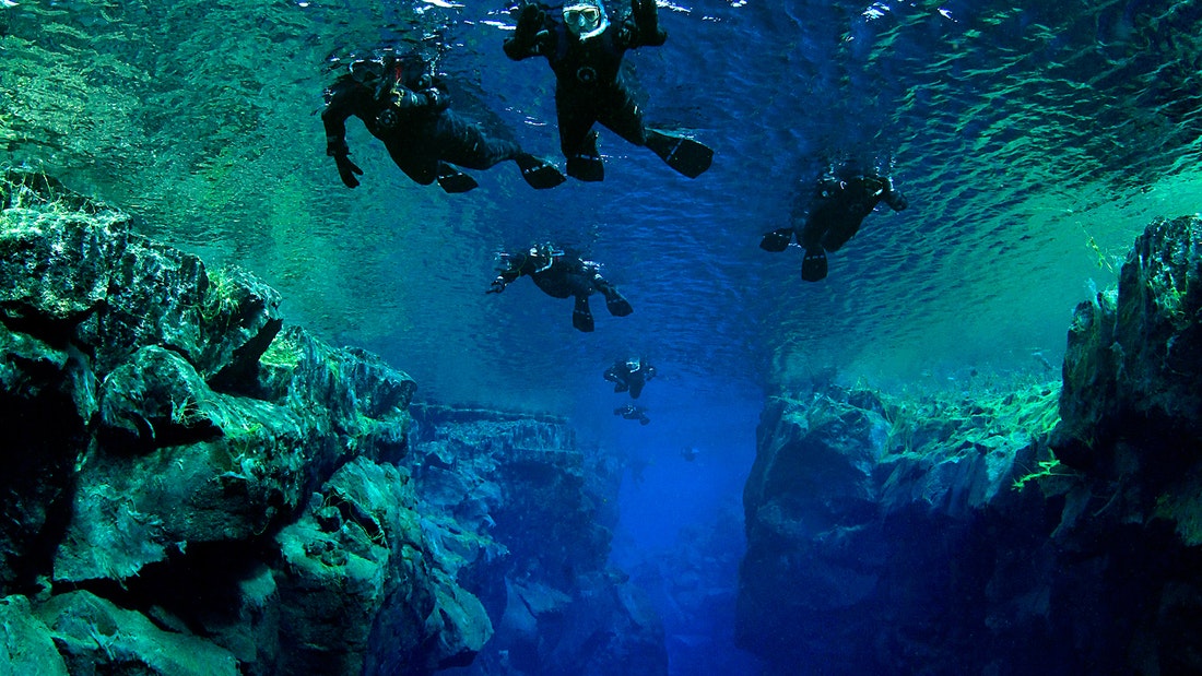 Snorkel between two continents in the crystal-clear waters of Silfra in Þingvellir National Park.