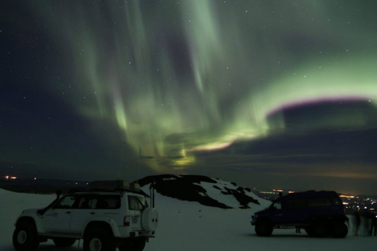 The Northern Lights tours usually depart around 8PM in the evening and the guide will take you out to the countryside away from any light pollution to get the best experience. You can choose between a group tour or private tour as well a bus tour, super jeep tour or a boat tour.